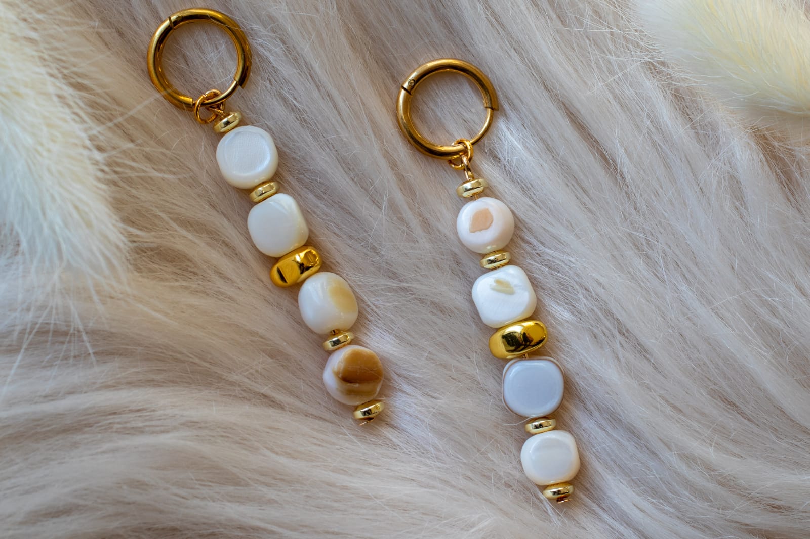 Kreolen "Sky Gold" - Edelstahl mit Hämatit & Glasperlen